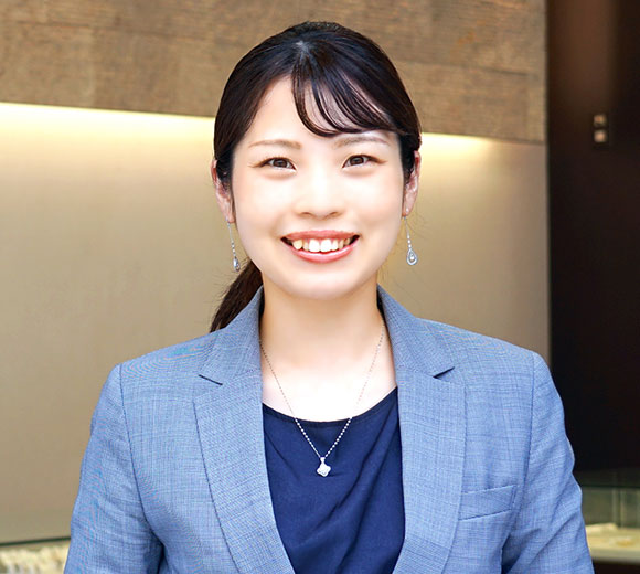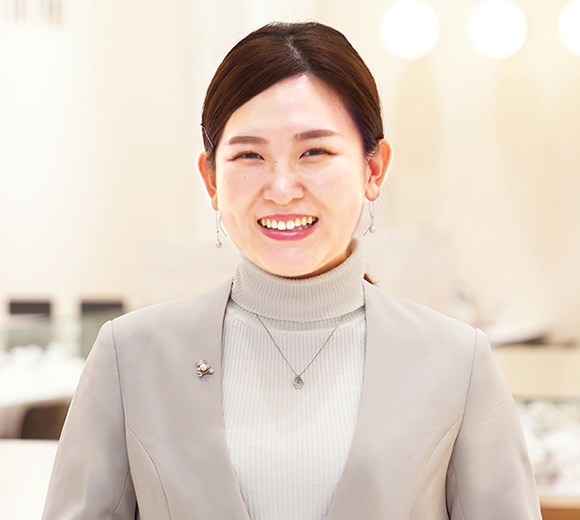 幅広い商品を扱っているため、お客様に一度ご来店いただいたら、その後も引き続きご来店いただき、信頼関係を築くことができるのがTSUTSUMIの特徴です。たとえば、ご結婚の記念にジュエリーをお求めいただいたお客様が、今度はデイリー使いのジュエリーが欲しいとご来店くださることもあります。そのなかで、お客様が名前を憶えてくださり、「また○○さんに選んでほしい」とご指名をしてくださることもあります。