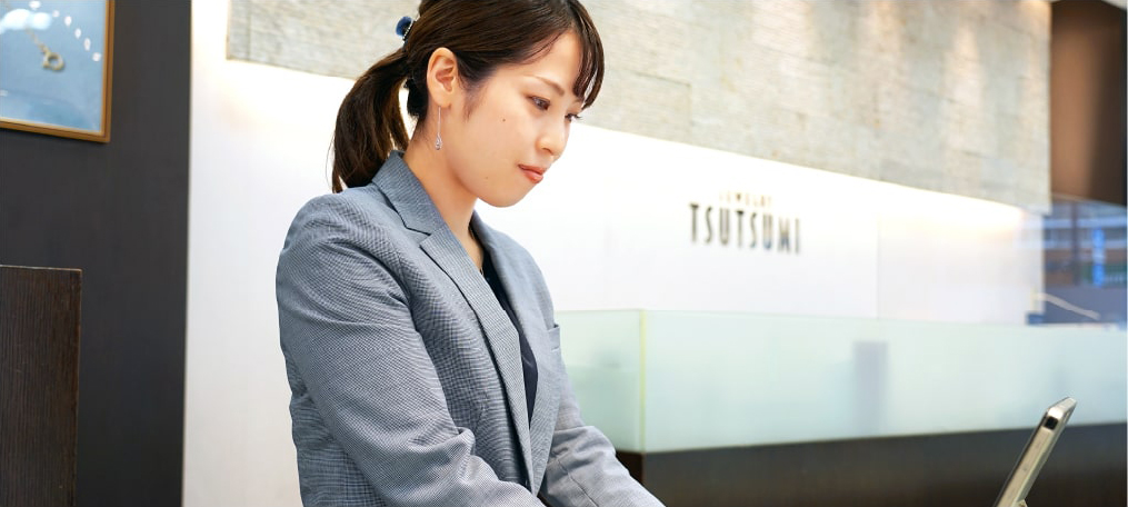 ツツミには、「お客様に美と夢と満足を提供する」という社是があり、私もジュエリーでお客様の人生をもっと輝かせたいと思って仕事をしています。この想いに共感していただけると嬉しいです。